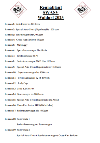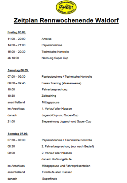 Die Nennungen und der Rennablauf für Waldorf sind jetzt online