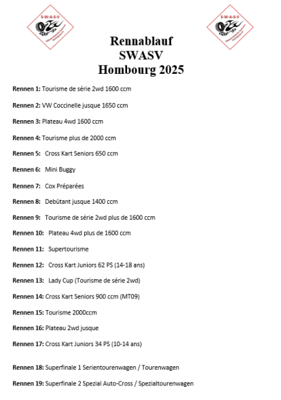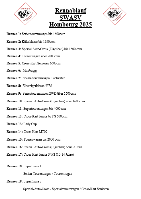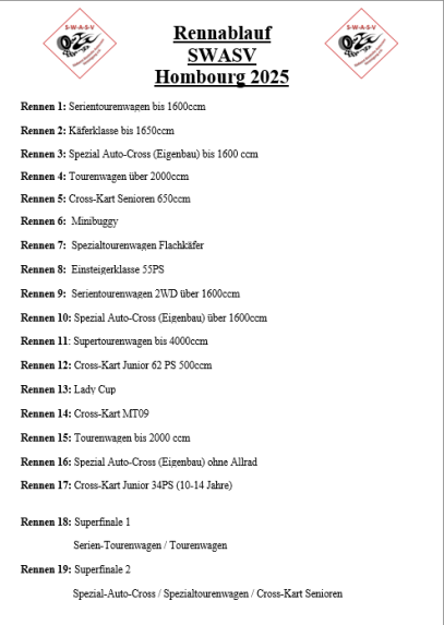 der Rennablauf und der Zeitplan für Hombourg ist online