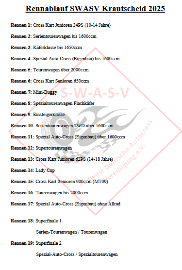 Die Nennung, der Rennablauf und der Zeitplan für Krautscheid ist jetzt online.