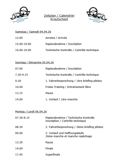 Die Nennung, der Rennablauf und der Zeitplan für Krautscheid ist jetzt online